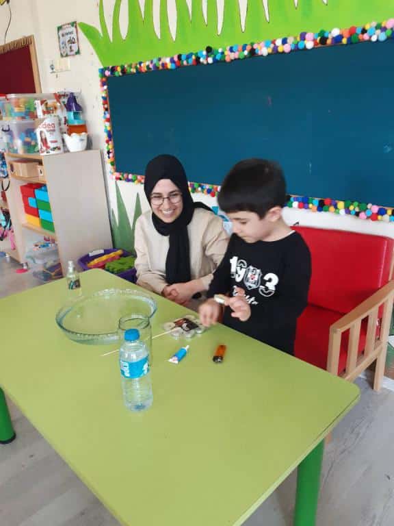 Sınıf başkanımız Ömer Tuğra ve annesi deney günü